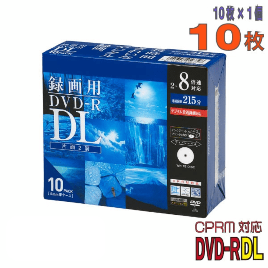 標準画質で約3時間半(215分)の長時間録画が可能な「片面2層(DL)」のDVD-Rです。 映画、スポーツ、ライブ映像など、分割したくない長時間の映像保存に最適。 CPRM対応でデジタル放送の録画も可能です。 大切なデータを傷やホコリから守る5mmスリムケース入りの10枚パックです。