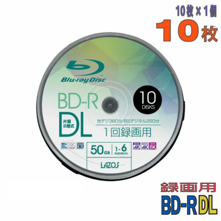 Lazos (ラソス)BD-R DL L-BDL10P 録画・データ兼用 / 50GB (片面2層)